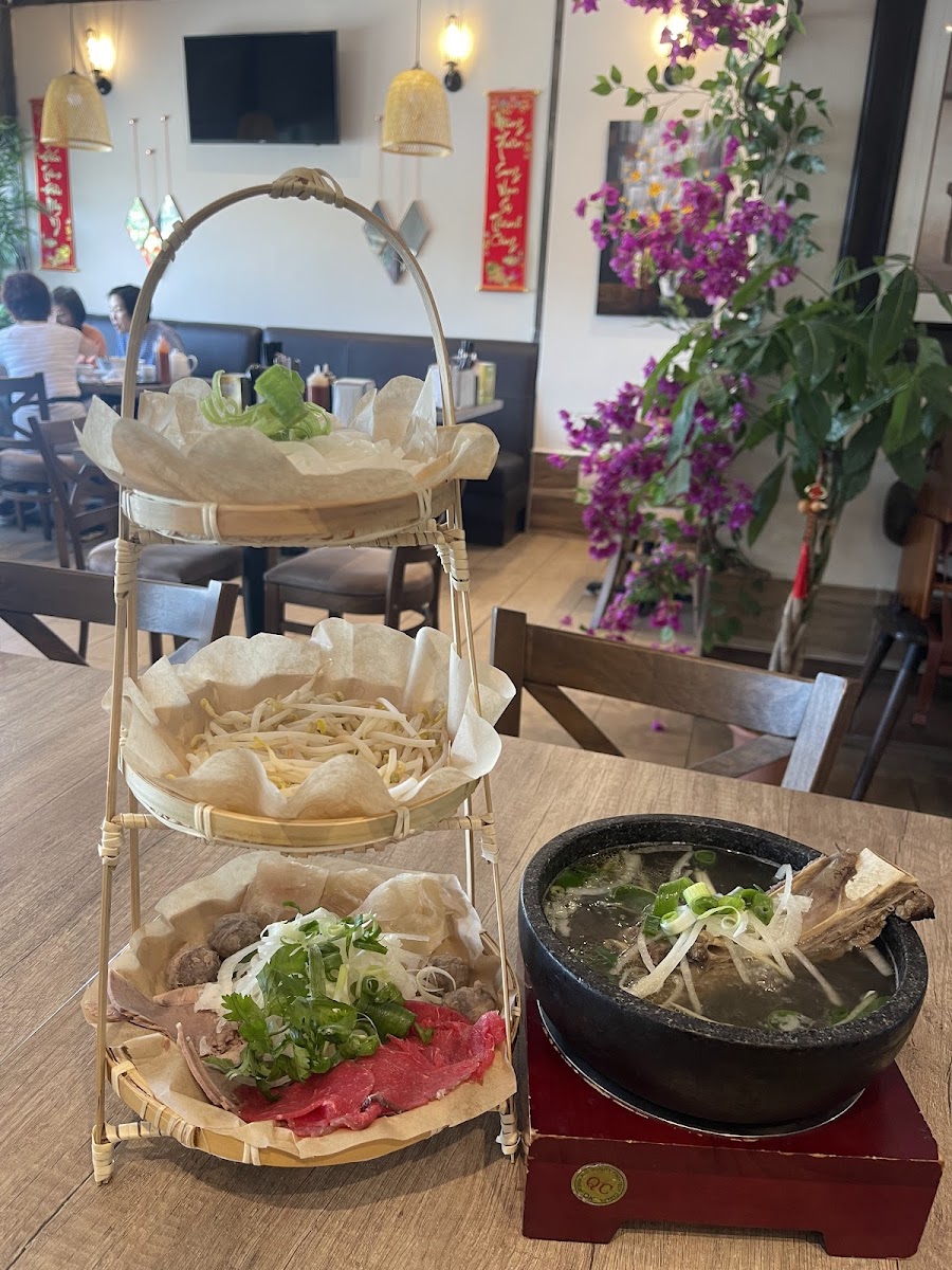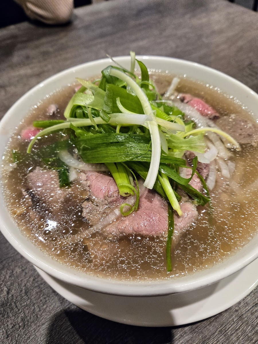 Pho Hong Phong is a Vietnamese restaurant tucked into a quieter area of Thornhill, making it a spot where locals come specifically for the food rather than the buzz of a busy strip. The interior is clean and thoughtfully designed, with traditional Vietnamese touches that create a calm, welcoming atmosphere — think warm lighting paired with rattan basket elements that gently evoke a Southeast Asian vibe without feeling overdone.