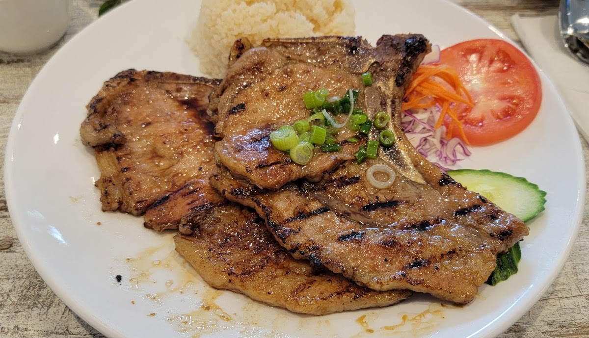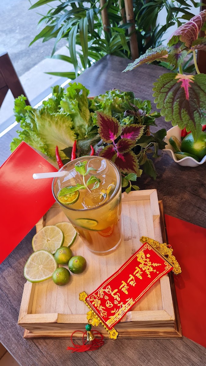 On the menu, the pho dishes stand out, particularly the rare beef pho, which arrives with generous portions of meat and a broth that balances flavors without overwhelming saltiness. Several guests have noted the grilled pork dishes as well — the lemongrass aroma and slightly charred edges add an appealing contrast, complemented by fresh, shredded lettuce and lightly pickled vegetables that cut through the richness. This balance of savory with fresh is a recurring theme, visible in other dishes like their grilled pork with steamed rice or the black tea infused with kumquat, which lends a subtle citrus note perfect for pairing with the heartier meals.